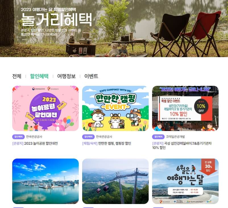 교통비 할인, 숙박비 할인, 입장료 할인, 이벤트 참여 기회, 여행 프로그램 등 다양한 혜택들 들이 있으며