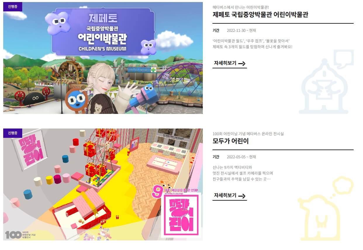 어린이 박물관에는 특별 전시관과 요즘 아이들에게 인기 메타버스 '제페토'가 중앙박물관과 콜라보하여 온라인관에 운영하고 있습니다