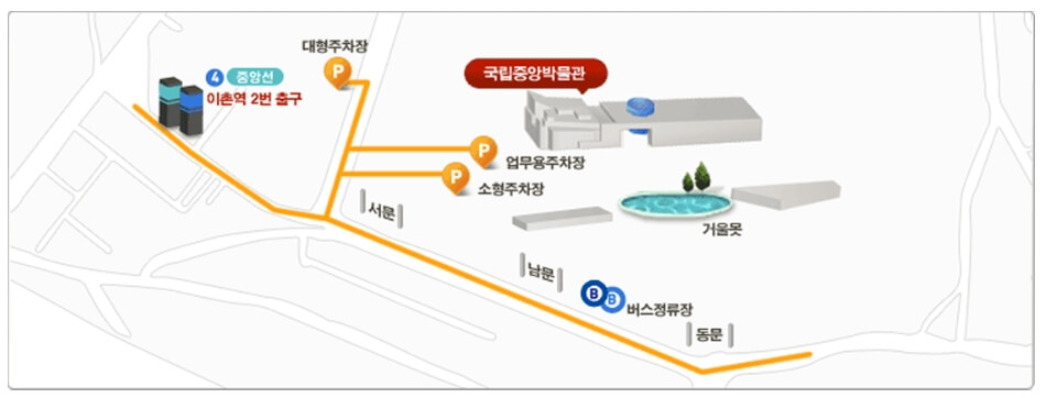 *국립중앙박물관 방문 시 차량 주차 공간이 쾌적하지 않기 때문에 대중교통을 이용하는 좋으며, 전자 주차 관제시스템과 무인정산기를 이용하면 편리하게 주차할 수 있습니다