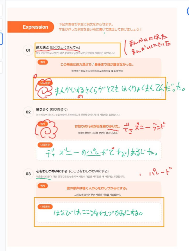 중간에 선생님께 단어나 문장의 뜻을 물어보지 않고 알아듣고 있는 저 자신을 보면 너무 뿌듯합니다